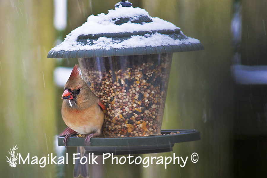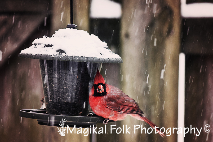Once home, I do what I do when it snows….feed the birds and take photographs ~ and there were lots of visitors today. 🙂