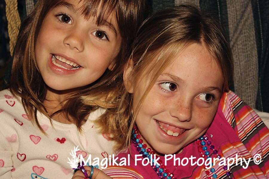 One of my goals this year is to participate in different photographic challenges…step outside my comfort zone. I Heart Faces is a site I have followed for quite some time but I have never participated in any of their challenges or contests….well, online anyway. Today I’m changing that. The contest is “Smile”…and what better image to submit than the one that always makes me smile when I look at it. These little girls are the younger sisters of my oldest daughter’s dearest friend. While the older girls were off getting ready for their evening, these two little pixies sat and talked with me. They were extremely interested in my camera sitting close by….so I offered to take their photograph. The lighting isn’t optimal…but the shy smile of the bejeweled pixie versus the “take my photo” smile of her sister were so sweet…perhaps you can see why this image is one of my favorites and makes me smile. 🙂