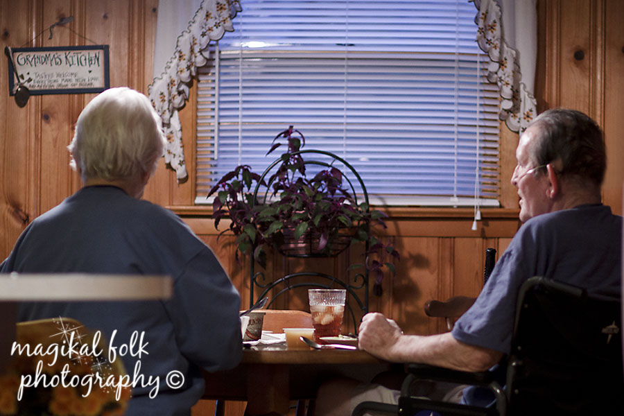 He has been home for some time now…shortly after Thanksgiving…but is unable to get around like he once did. My mother has been caring for him….day and night. It has been hard on both of them these past few months but they are working through the hard patches, a little bit at a time. Tonight I was happy to witness a milestone for Pop….the first time he has been able to sit at the dinner table with her since his accident. It took a bit of doing to get him there….but once he was in his familiar place at the table, he was happy to be there.