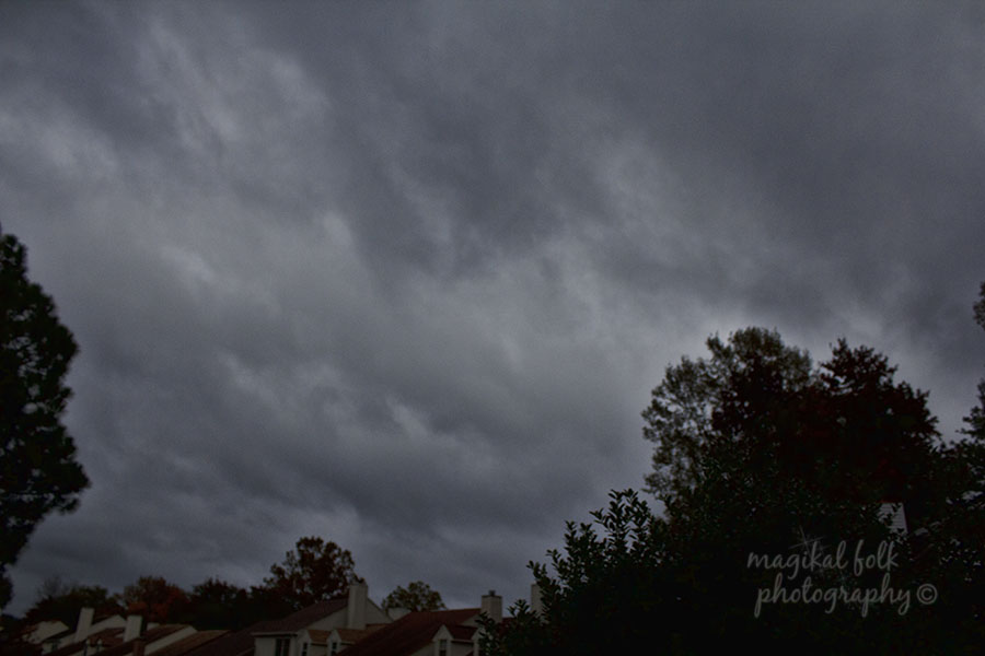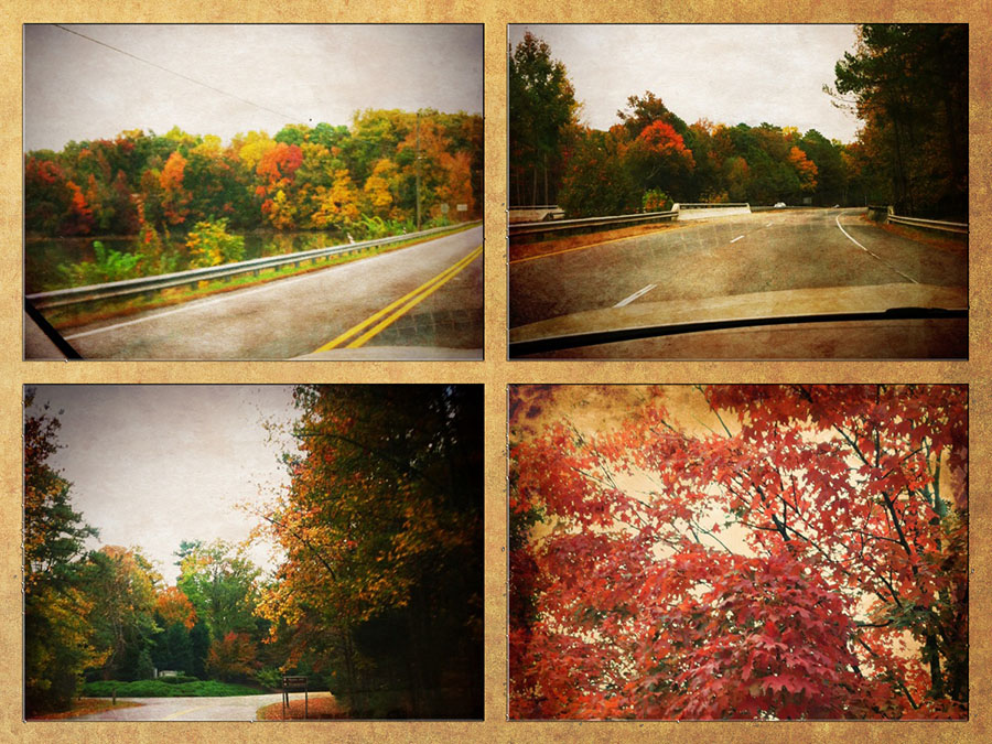 The thing that I hate about this storm {well other than copious amounts of rain and wind} is the leaves were just beginning to change….just beginning to get colorful. Sure some have changed but the vast majority was finally coming around and now the wind and rain will get them all…..blown away. And since they were just beginning to change, that means the trees are still fully loaded with leaves….the better to grip the wind with my dear. I took these images Friday and Saturday with my iPhone ~ the leaves before the storm….